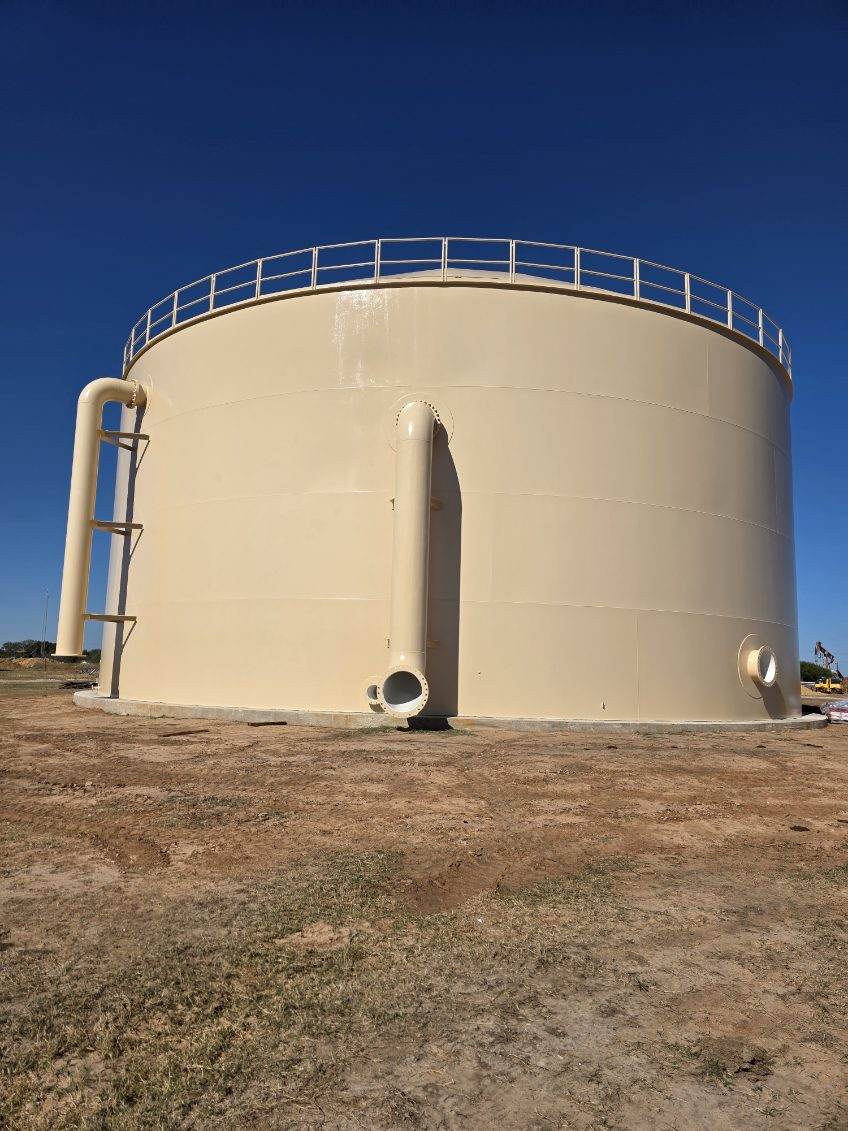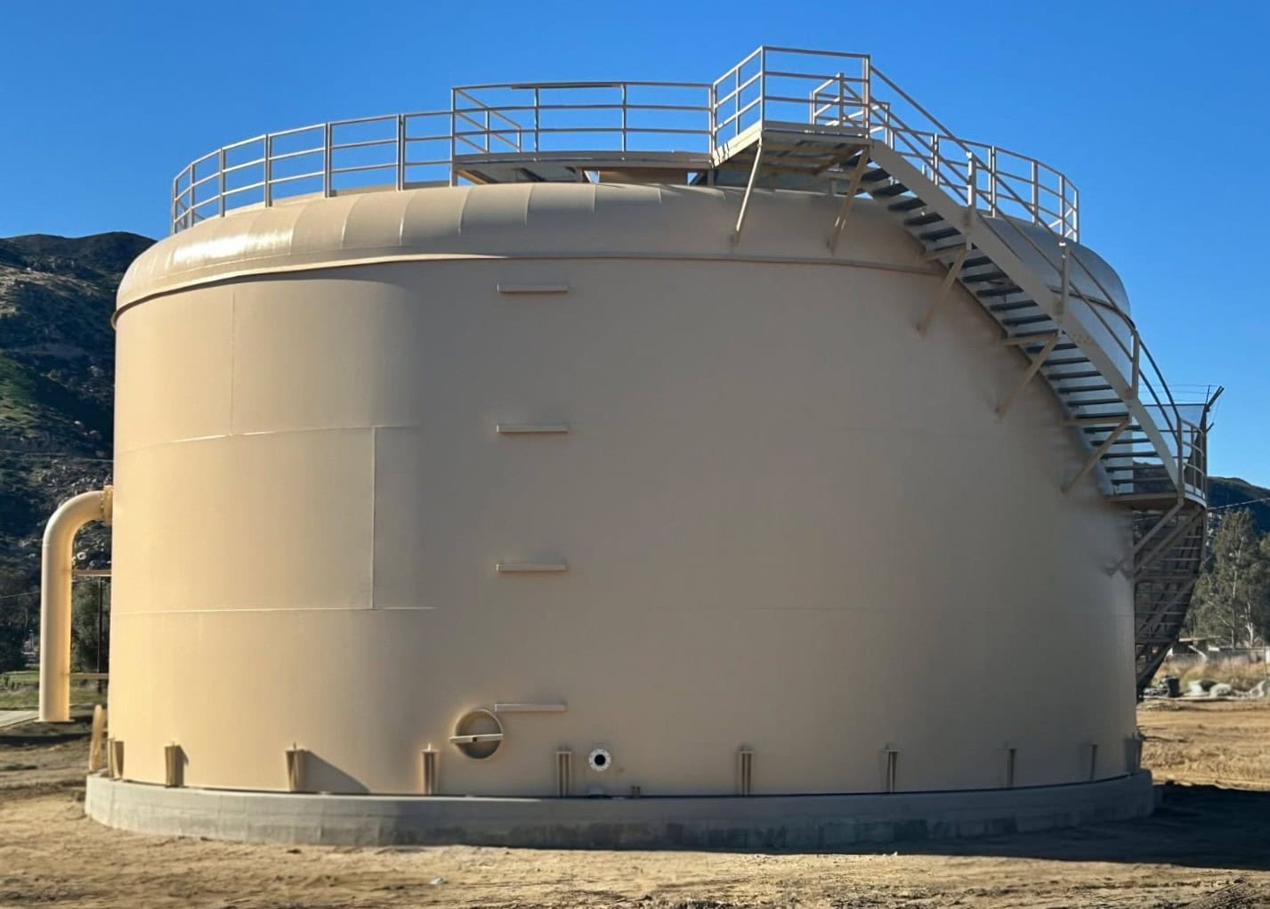 This project consisted of construction of a single 1,000,000-gallon welded carbon steel tank in Bryan, Texas. The tank features an umbrella dome roof with a full perimeter handrail and standard appurtenances, providing a rigid, self-supporting structure with efficient load distribution and long-term durability. Shop blasting and priming were completed prior to delivery, reducing field labor, lowering costs, and shortening the construction schedule while maintaining coating quality.