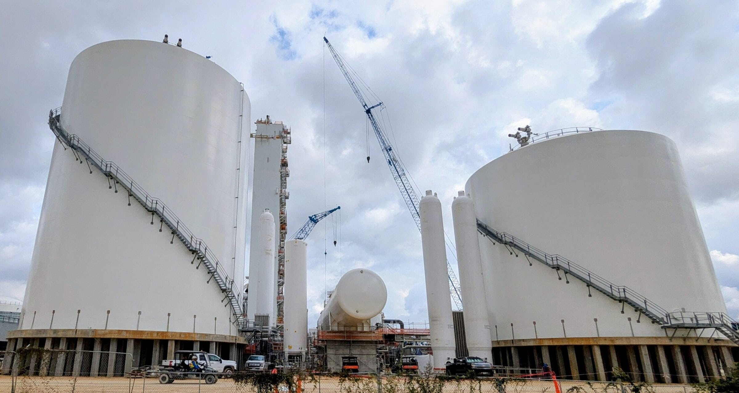 These recently completed Liquid Nitrogen and Liquid Oxygen Cryogenic tanks are comprised of a stainless steel inner tank and a carbon steel outer tank. They combine to hold 16,500 m3 of Liquefied Nitrogen & Oxygen at negative 320 degrees F.