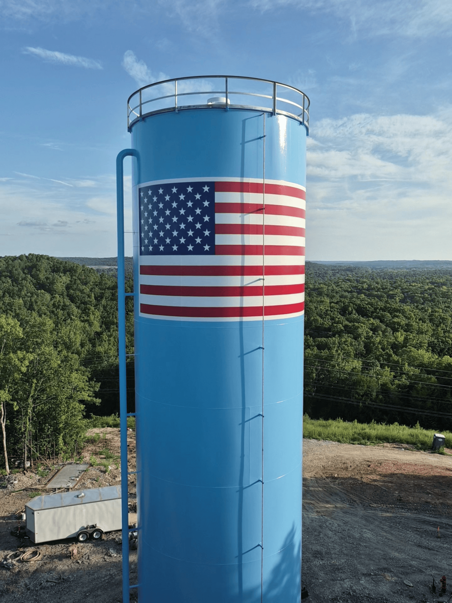 Hidden in Alabama’s woods, the Colbert County standpipe towers above the treetops as a bold landmark. Built atop a steep hill, the project required ingenuity and teamwork, with utility crews hauling heavy equipment up rugged terrain. From design and fabrication to a dramatic, patriotic finish, the tank contractor delivered an engineering feat that symbolizes strength, perseverance, and community service
