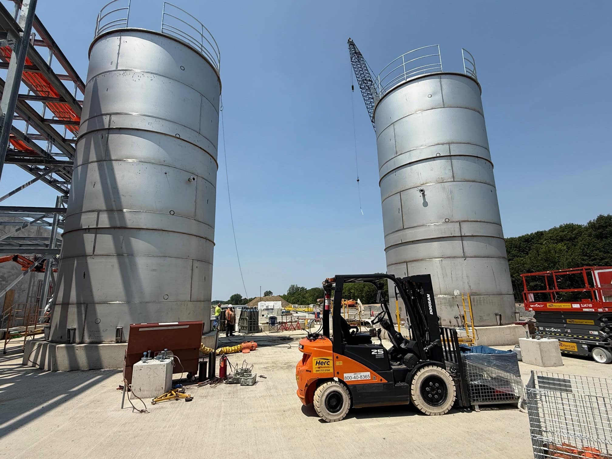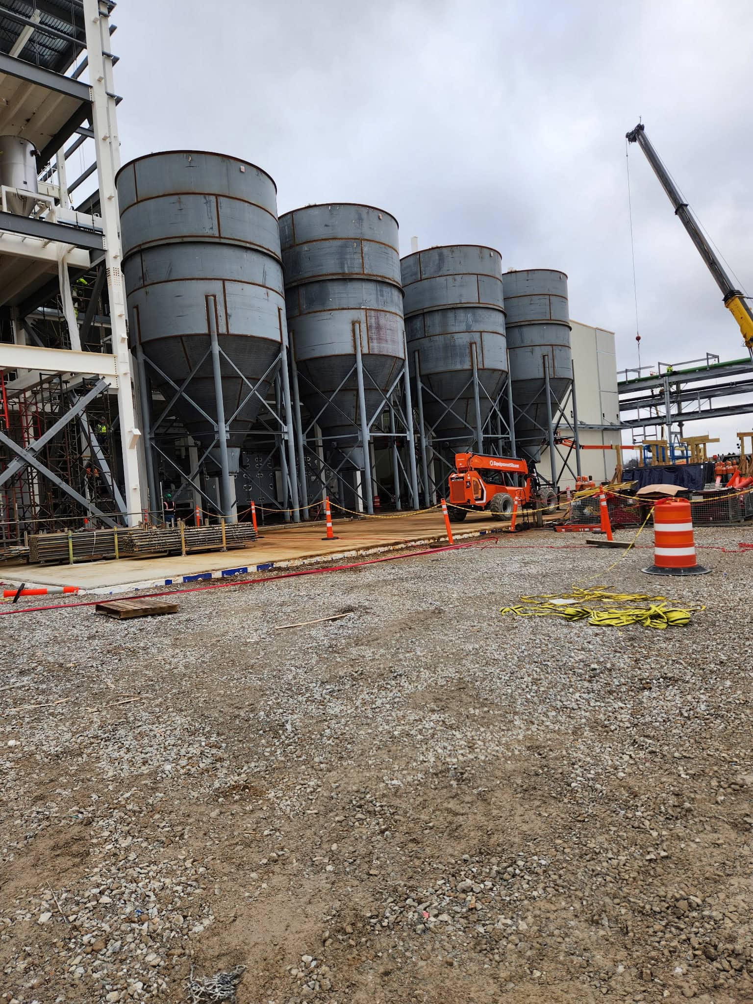 Our company erected four of these large elevated storage bins as part of the $530 million expansion at the Bunge North America facility in central Indiana.